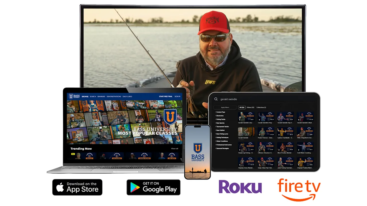 Elite-level skill doesn't happen by accident. Stream the industry’s best bass fishing training classes on your phone, tablet, or TV and start out-thinking the competition before you ever launch the boat.